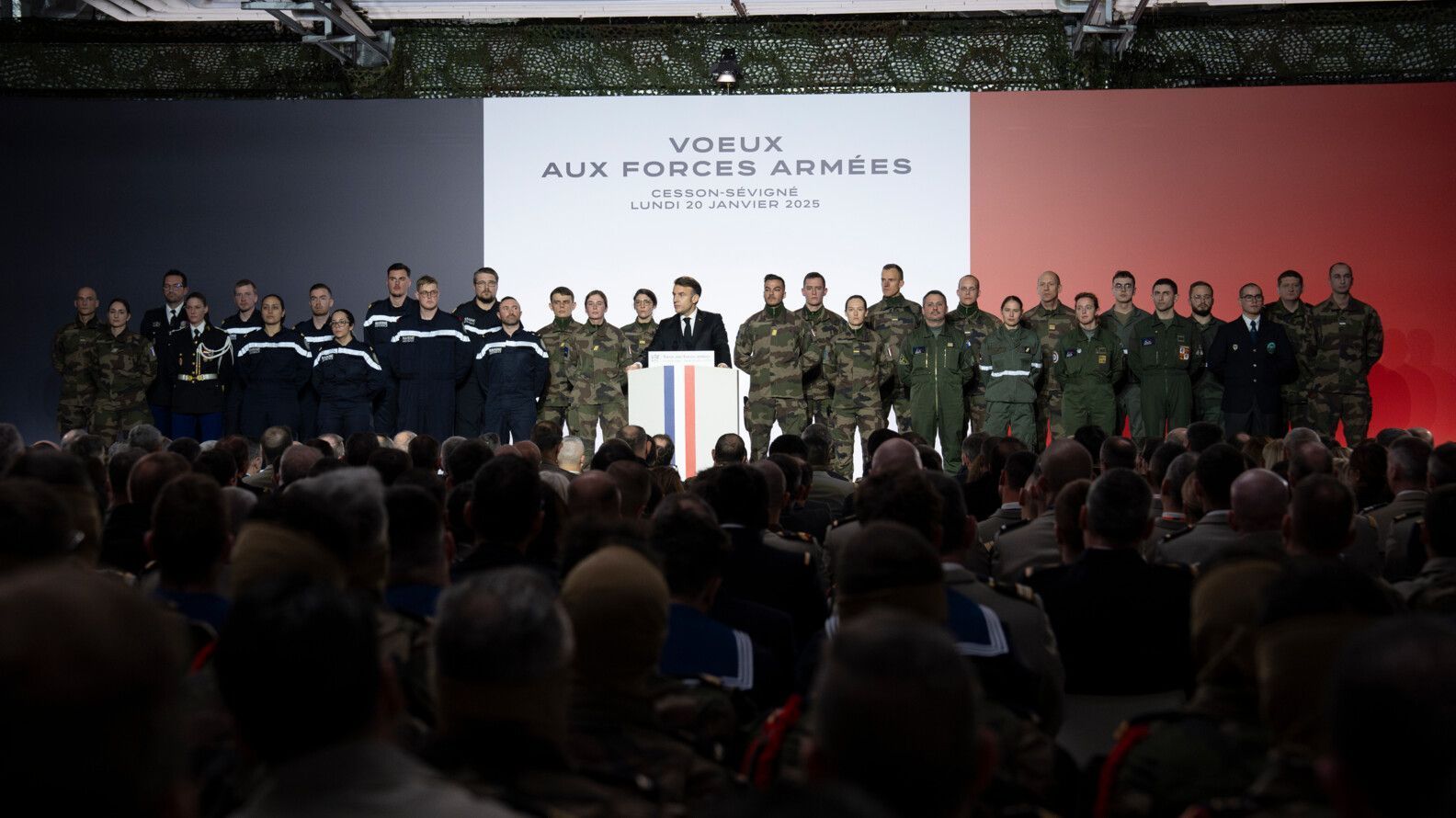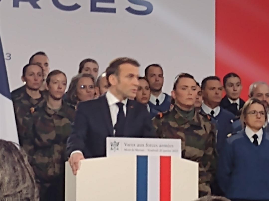 Lundi 20 janvier 2025, le président de la République, Emmanuel Macron, a adressé ses traditionnels vœux aux forces armées à Cesson-Sévigné, en présence du ministre des Armées, Sébastien Lecornu, du Chef d’état-major des armées (CEMA), le général d’armée Thierry Burkhard, du Directeur général de la Gendarmerie nationale, le général d’armée Hubert Bonneau, et des chefs d’état-major des armées.