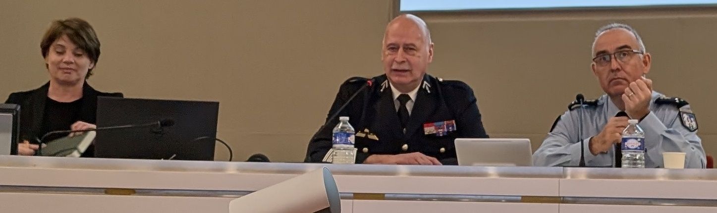 Nous avons assisté aussi à la présentation de deux gendarmeries spécialisées, la Gendarmerie des transports aériens (GTA) et la Garde Républicaine, faites respectivement par le Colonel ®Florian de LEIRIS, conseiller-réserve GTA et le colonel ®François DUBREUIL, conseiller-réserve de la GR.